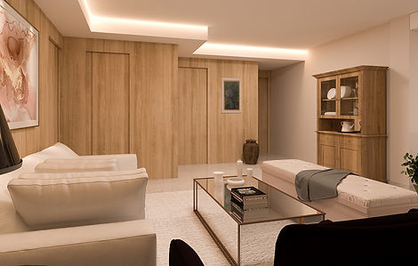 Em uma casa, o cliente precisava de um espaço com uma suíte para os hóspedes, mas que também pudesse ser utilizado como sala integrada à área de lazer.